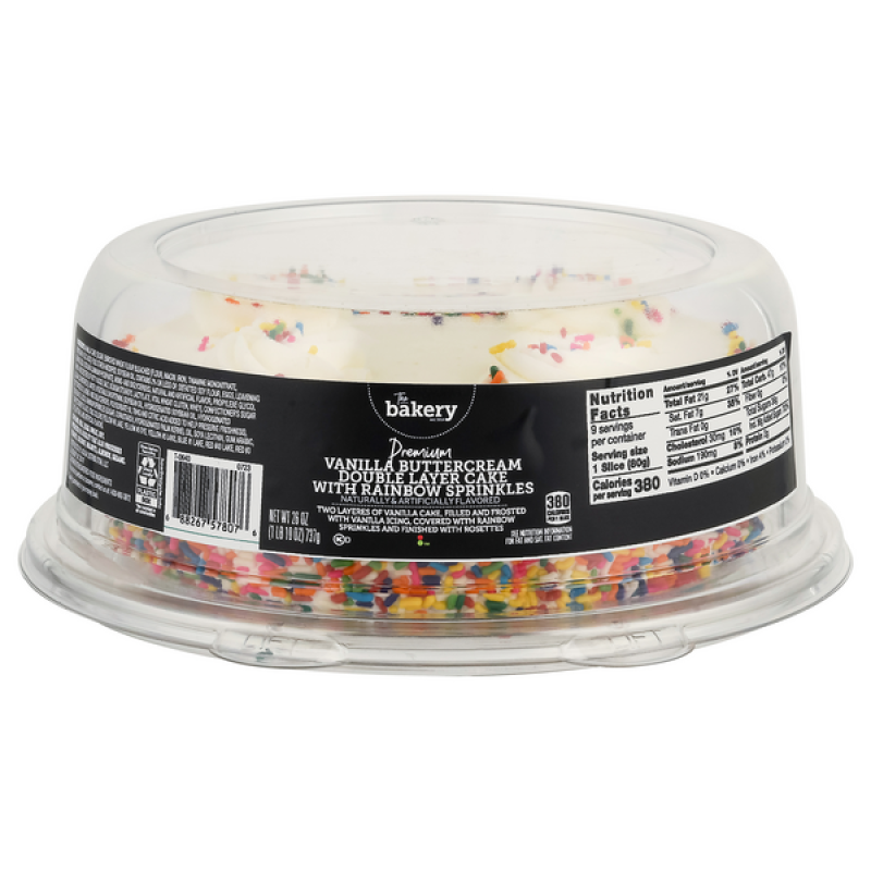 A soft, fluffy vanilla cake layered with smooth buttercream frosting — baked fresh and perfect for every celebration.